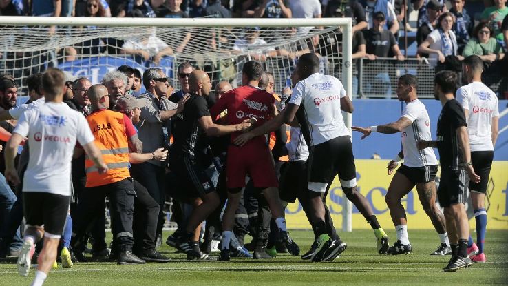 The game, on April 16 at the Stade Armand-Cesari, was abandoned at half-time after Bastia fans invaded the pitch for a second time to confront Lyon players.